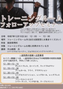 ホーム » 施設【お知らせ】 » 「トレーニングルームフォローアップセミナー」開催します